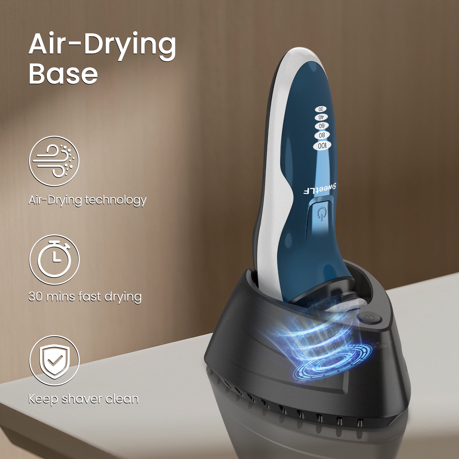 SweetLF Electric Shaver with Air Drying Base - IPX7 Waterproof Electric Razor, Rechargeable Cordless Shavers for Men, Type-C, 120Mins Runtime, Plug & Play, Pop-up Trimmer, (with US Standard Charger),Blue
